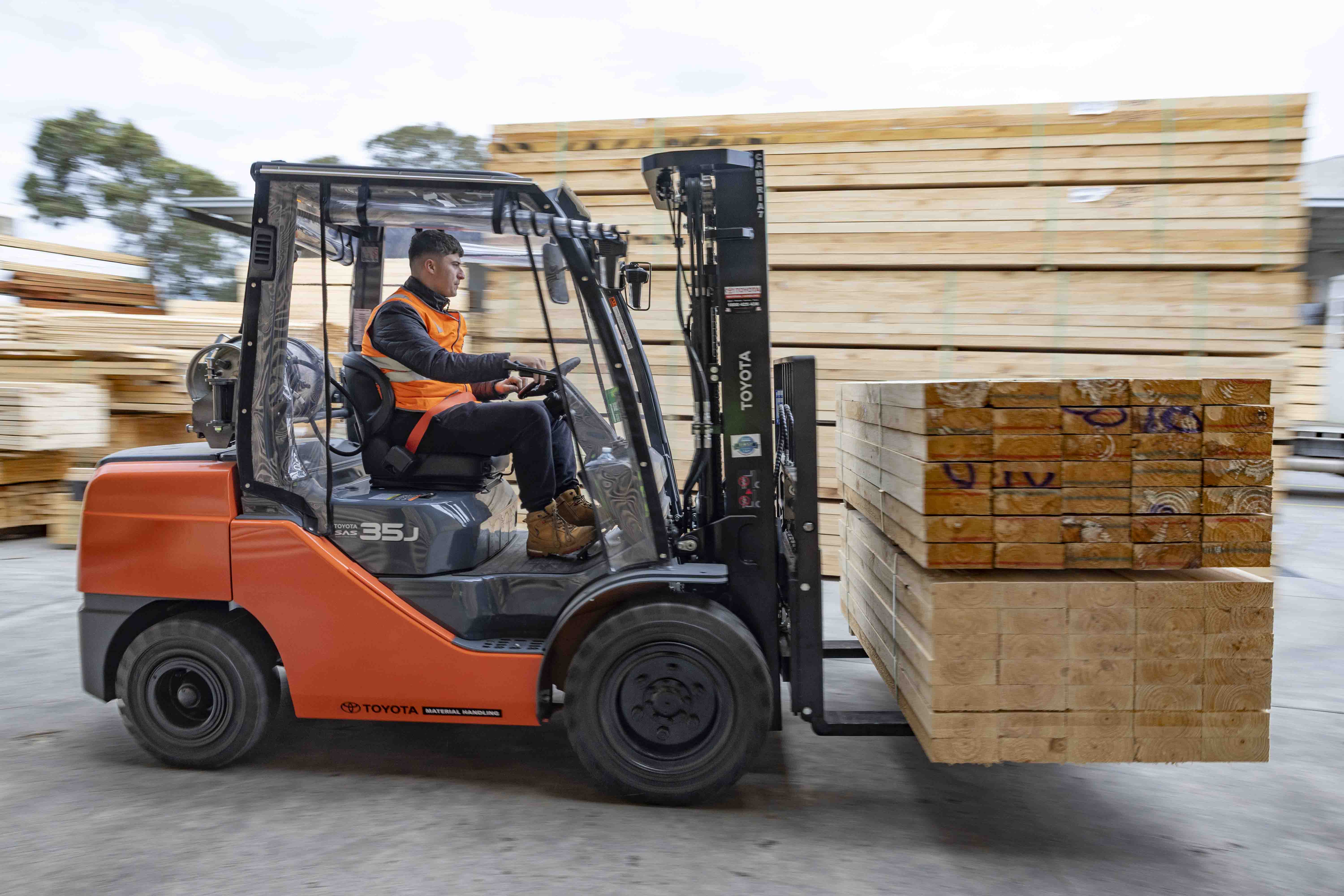 Cambria recently took delivery of a new 8FGJ35 3.5-tonne unit, which helps the company to unload two to three semi-trailers worth of timber daily and transport them around the warehouses for cutting, treating and storage.