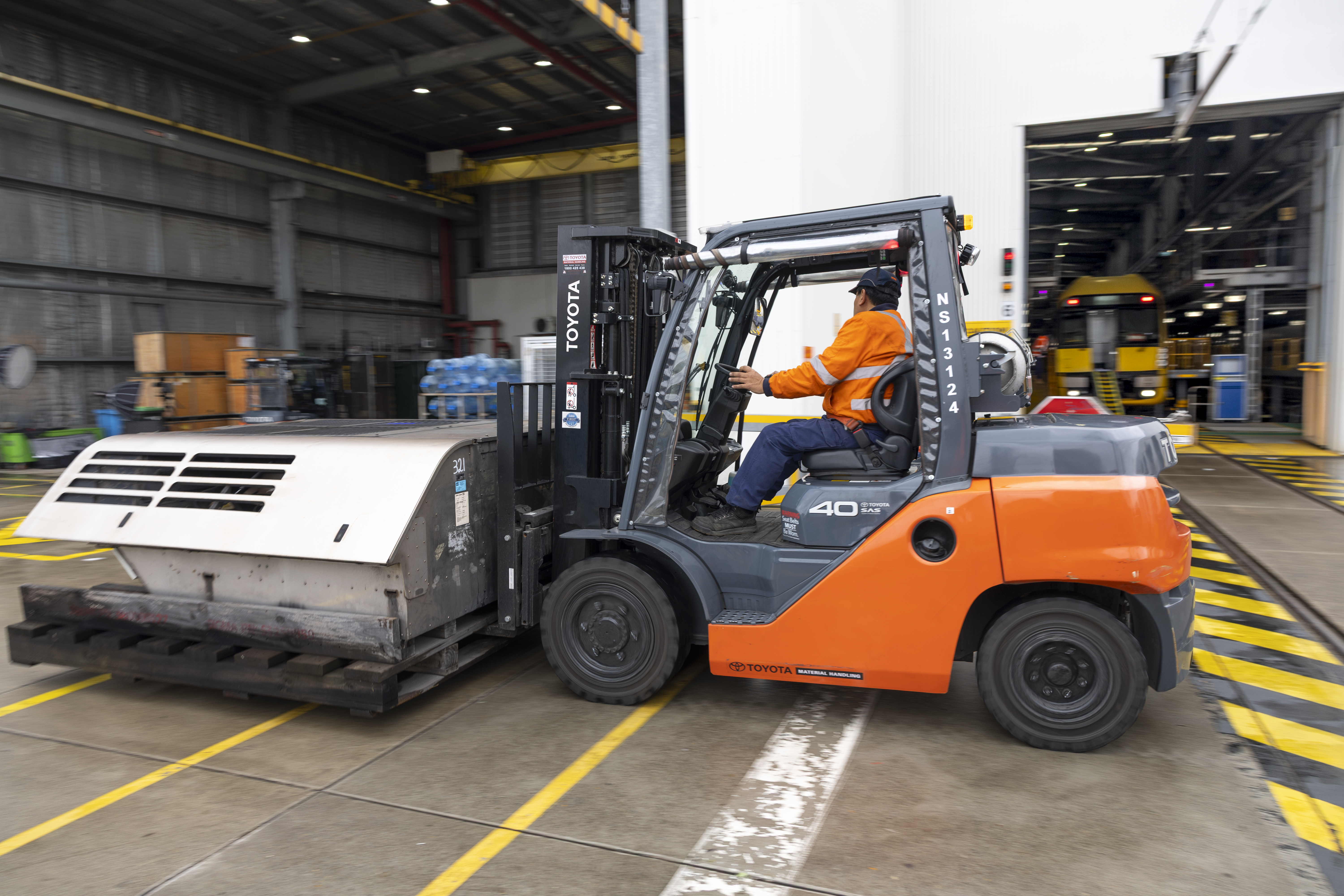 “When you see the trains on a platform you see all the roof equipment and the pantographs, the forklifts are required to lift large pieces of equipment like that,” Mr Barlow said.