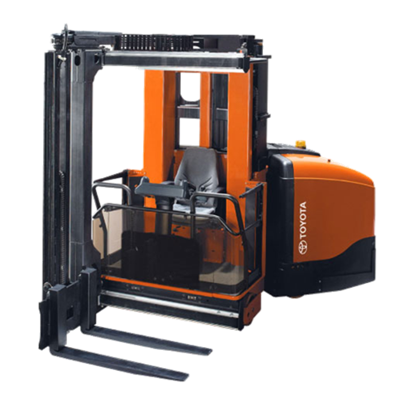 The Toyota Vector VCE150A very narrow aisle forklift is a powerful man-up combi forklift designed especially for pallet handling. The forklift's clear open front offers safe, highly effective order picking in very high racking systems.